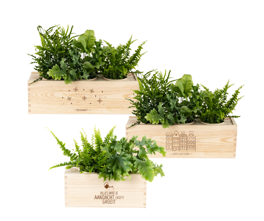 Die Greetings BloomsBoxen können ganzjährig mit luftreinigenden Pflanzen in den Größen pro Stück bestellt werden Mittel und Groß.