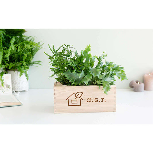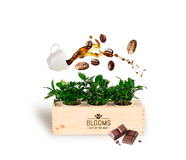 Bei den Geschenksets ist die stabile Versandverpackung aus Holz gleichzeitig die Vase oder der stabile Übertopf mit integriertem Wasserreservoir. Neben unseren Frischpflanzen fügen wir der BloomsBox als zusätzliche Überraschung für den Beschenkten schöne, schmackhafte und soziale Produkte hinzu.